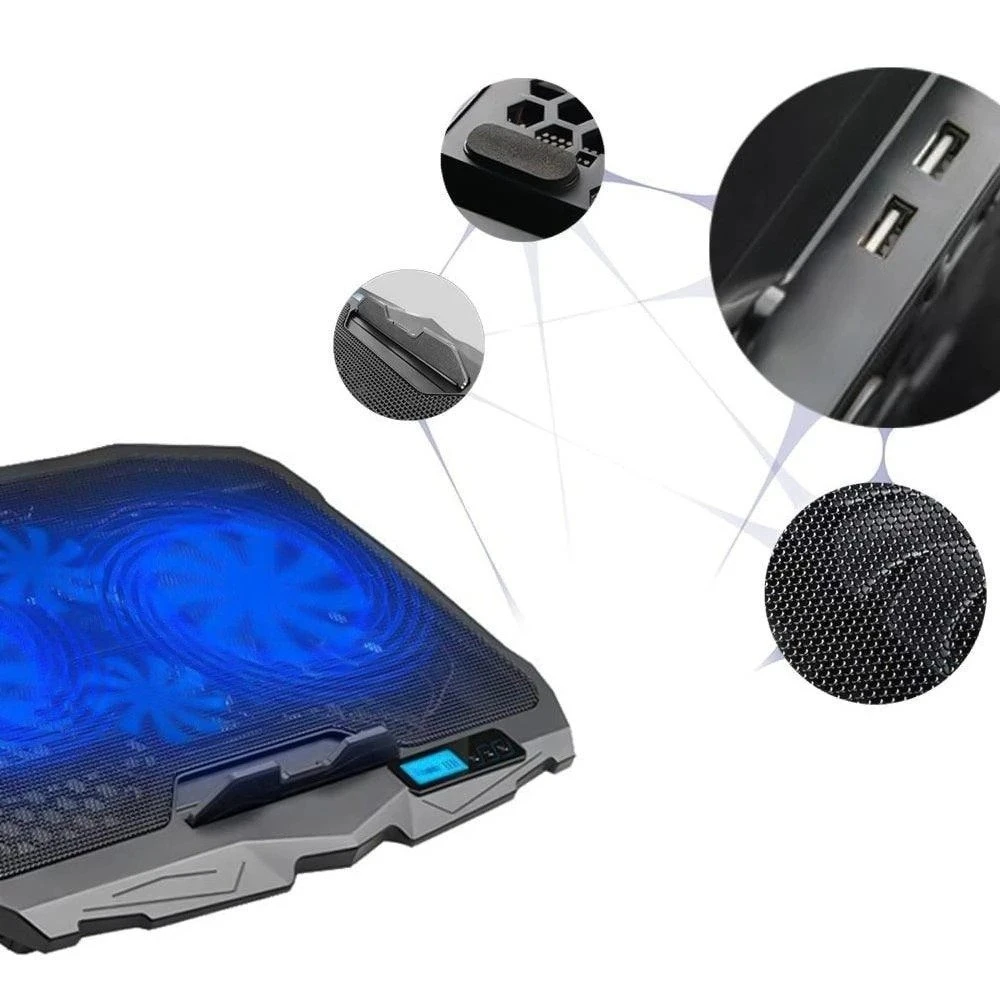 حافظ على أداء جهازك لأقصى درجة مع قاعدة تبريد اللابتوب Gigamax Plus، المزودة بـ 4 مراوح قوية (2 صغيرة + 2 كبيرة) بسرعات مختلفة لتبديد الحرارة بكفاءة وهدوء.